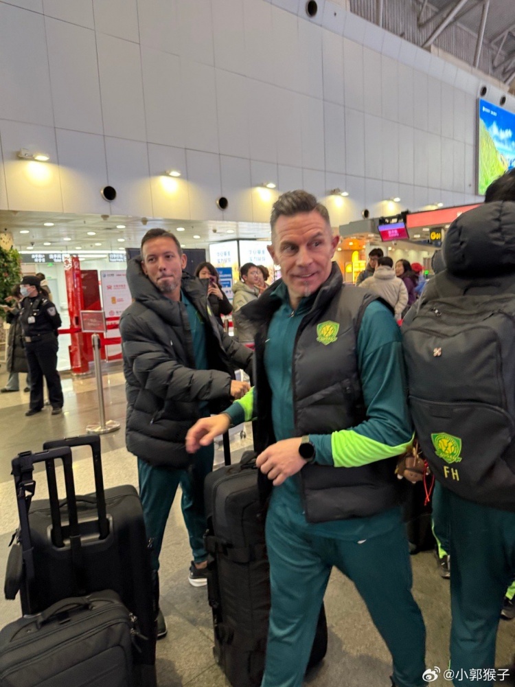 1月17日讯 为备战新赛季,北京国安在今天乘机飞赴海口进行冬训。球迷“小郭猴子”晒照,原成都蓉城教练组成员汉斯和罗德里戈出现在北京国安的出发队伍中。